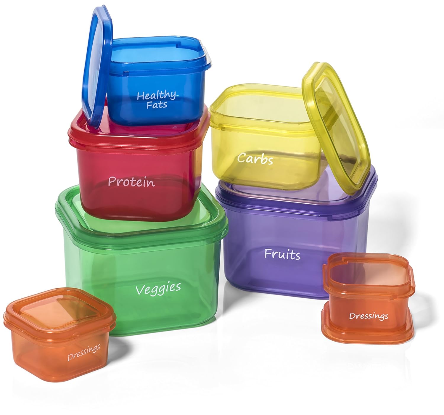 $7.95 7 Piece Multi-Colored Portion Control Containers Kit WITH LABELS – Easy to Use Guide Included (BPA free)
