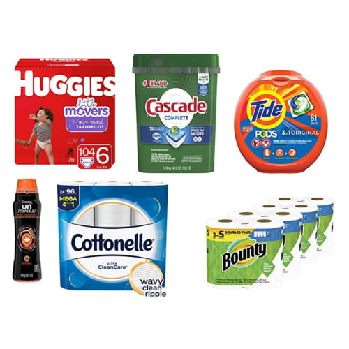 This sale includes these brands as well as many others!! Bounty, Cascade, Tide, Huggies, Pampers, Finish, Gain, Cottonelle and more!! Check out this amazing deal here!!