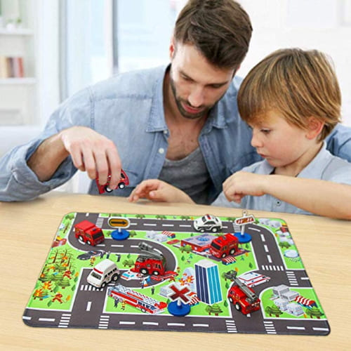 Gift idea!! Grab this 6-Fire Truck Toy Set with Play Mat and 3 Road Signs for ONLY $6.99 shipped when you use promo code: C4MP48WV (reg. $16.99).