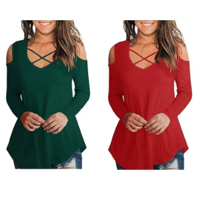 Score these adorable & highly rated Cold Shoulder Long Sleeve tops for just $5.70 shipped when you use promo code 70S67R55 at checkout! (reg. $19!!)