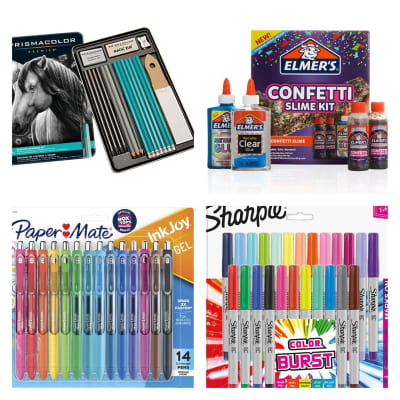 The sale includes slime kits, sharpie markers, coloring pencils, all things related to office and school supplies!!