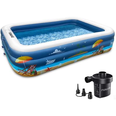 This inflatable swimming pool with electric pump is just $54 shipped when you clip the $13 coupon and enter code DFZCLVJ4 at checkout!