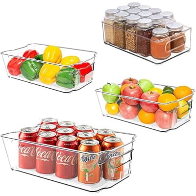 Get this 4 pack of fridge bin organizers for $15 shipped with code M8ULKZ6Q at checkout!
