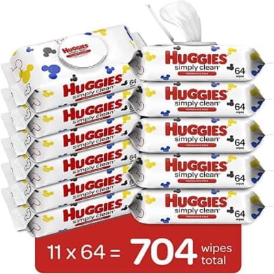 ??? Huggies Simply Clean Fragrance-Free Baby Diaper Wipes, 11 Flip Lid Packs (704 Wipes Total) as low as $9.87 shipped when you clip the $3 coupon and choose Subscribe & Save!