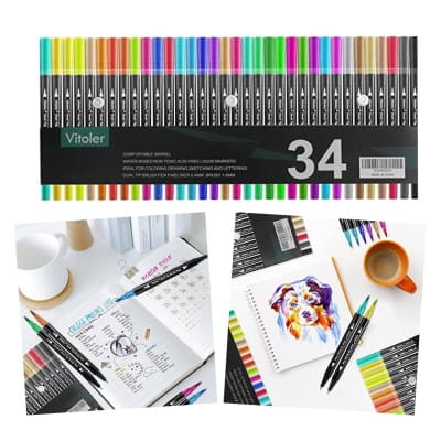 ? Get this pack of 34 Dual Tip Fine Point Pens & Brush Markers for ONLY $7.49 shipped with code 40E2G98G plus 10% coupon at checkout!
