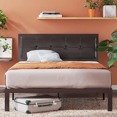 This Queen Size Zinus Faux Leather Headboard and Classic Platform Bed Frame is HALF OFF right now, just $150 shipped!