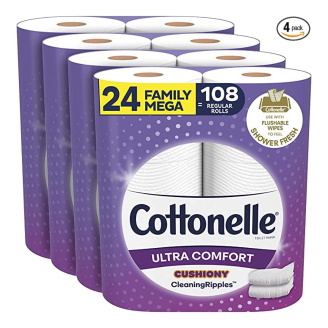Cottonelle Ultra Comfort Toilet Paper (24 Family Mega Rolls = 108 regular rolls) as low as 15 BUCKS shipped with coup0n and S&S!