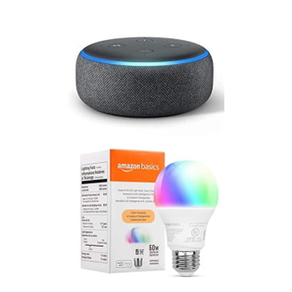 This Echo Dot (3rd Gen) Charcoal with Amazon Basics Smart Color Bulb bundle is 71% off right now!