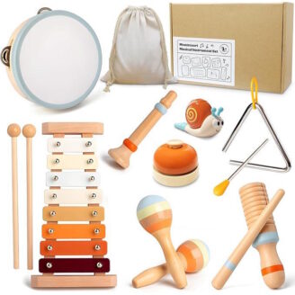 This 8-in-1 Montessori musical set is packed with wooden percussion toys—xylophone, maracas, tambourine, and more! It’s the perfect screen-free gift for toddlers 3+.
