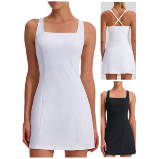 • Built-in shorts and bra = throw on and go