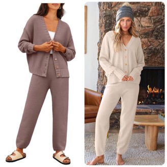 This cozy cardigan + pant set looks way more expensive than it is — slouchy, soft, and perfect for travel days, lazy Sundays, or gifting. 🤎