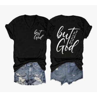 Check out this stylish V-neck tee featuring a powerful message: “but God.” Perfect for casual outings or expressing your faith!