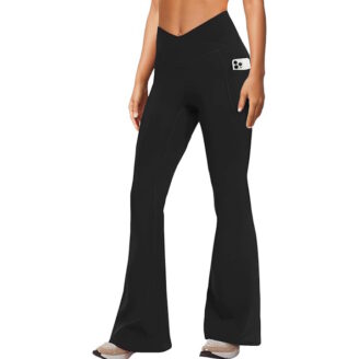 Crossover flare leggings with pockets + no front seam (we love a smooth fit 🙌🏼). High-waisted, super flattering, and comfy enough for workouts or everyday wear.
