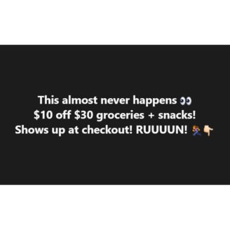$10 off $30 groceries + snacks!