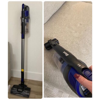 LED headlights (so you actually SEE the dirt 😭) + great for pet hair