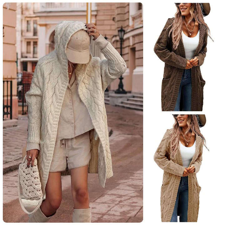 (Expired) Hooded Cable Knit Cardigan 45% Off!