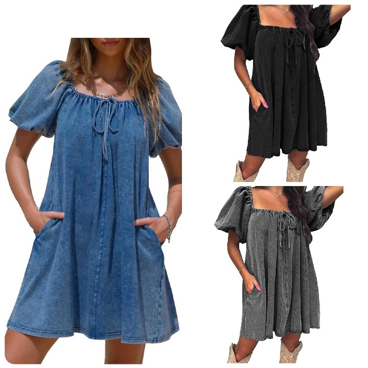 50% Off Denim Short Puff Sleeve Dresses Knit!